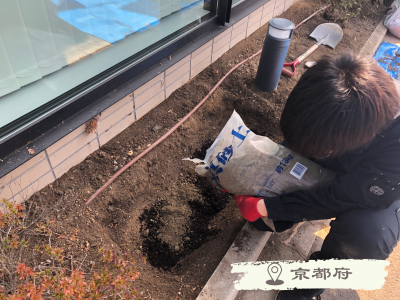 店舗前の花壇整備が担当させていただきました!